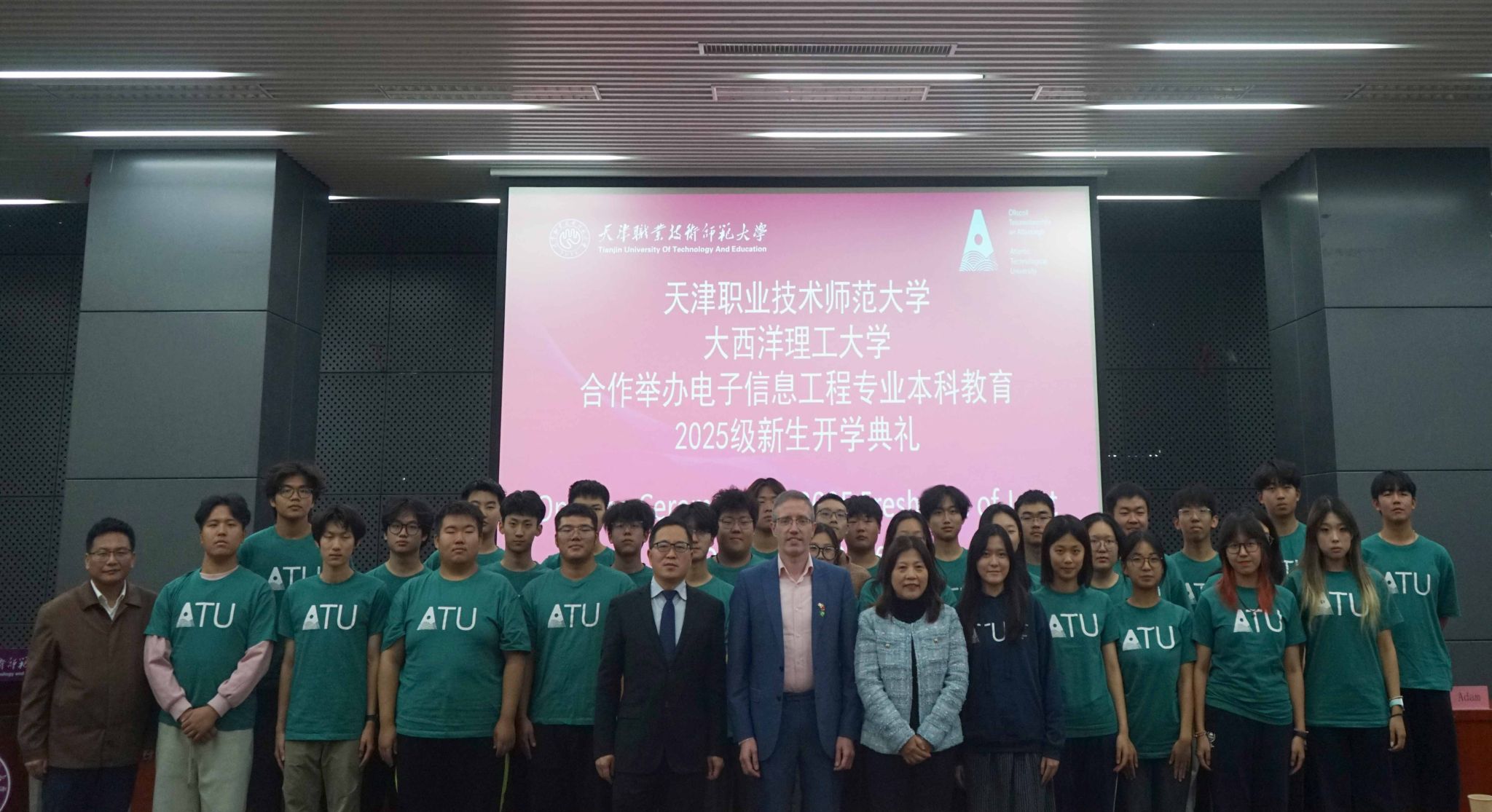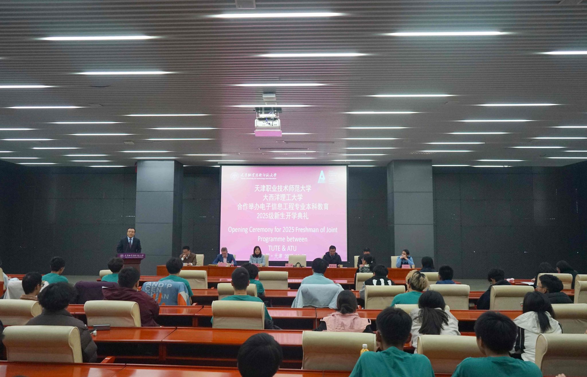 10月27日,我校在国交三楼报告厅举行与大西洋理工大学的合作办学项目电子信息工程专业的2025级新生开学典礼。大西洋理工大学机械工程学院院长David John Mulligan、我校党委常委、副校长米靖出席典礼。