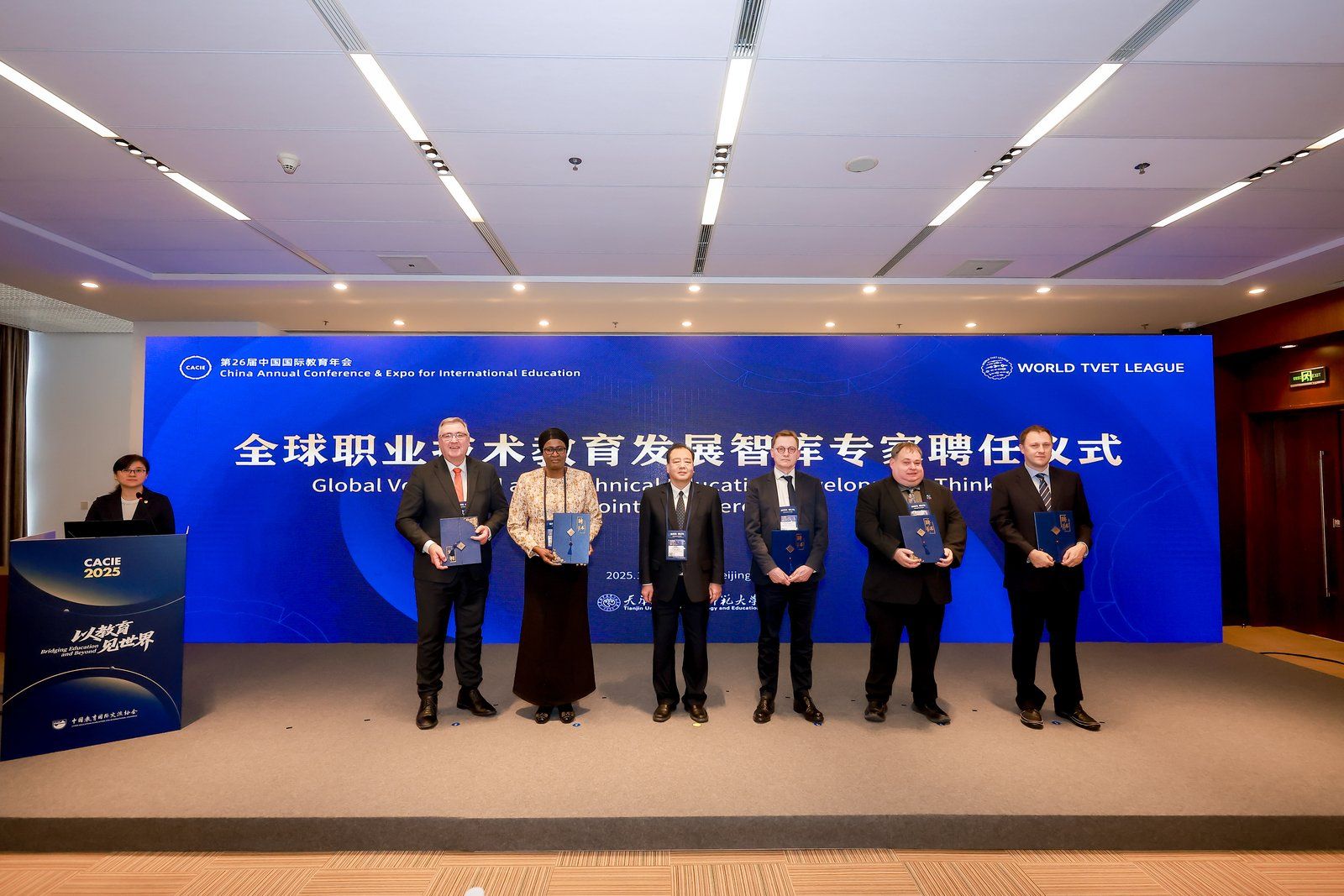 论坛正式发布职业技术教育国际交流合作的创新成果。其中,世界职业技术教育发展联盟官方网站于会上正式发布上线,同时,联盟新增莫斯科国立通讯与信息技术大学、泰国春武里技术学院等20位成员。全球职业技术教育发展智库新增世界职业技术教育发展联盟副主席、澳大利亚墨尔本理工学院副校长Timothy Tom Gilbert,世界职业技术教育发展联盟副主席、加拿大谢尔丹理工学院副校长Jason Rolls,德国TÜV莱茵学院全球职业教育总监Carlo Humberg,非洲技术与应用型大学与学院协会秘书长Jahou Faal,澳大利亚维多利亚州政府技能局首席执行官Craig Robertson等5位专家。受刘利民主席委托,张金刚副主席代表世界职业技术教育发展联盟向5位专家颁发全球职业技术教育发展智库专家聘书。这些务实的合作成果标志着覆盖全球的职业教育合作网络正在逐步形成、完善,也是职业教育高质量国际交流合作的生动体现。
