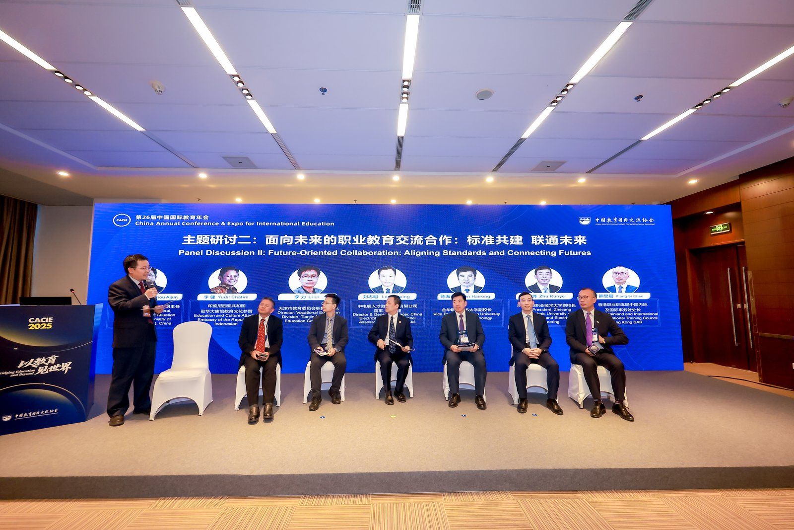10月30日下午,由中国教育部职业教育与成人教育司指导,中国教育国际交流协会主办,世界职业技术教育发展联盟和我校承办,外语教学与研究出版社协办的“全球视野下的职业技术教育创新发展论坛”在国家会议中心(北京)成功举办。此次论坛是第26届中国国际教育年会中聚焦职业教育国际交流合作的一场重要活动。世界职业技术教育发展联盟副主席、我校党委书记张金刚,校党委常委、副校长米靖受邀参加年会并出席本论坛,与各国的世界职业技术教育发展联盟成员代表以及职业教育领域的专家学者广泛交流,探讨共促职业教育合作发展的创新路径。