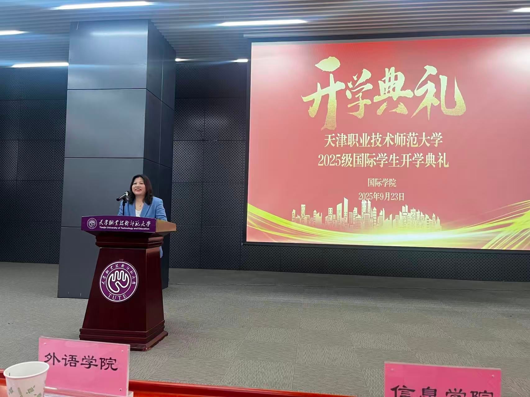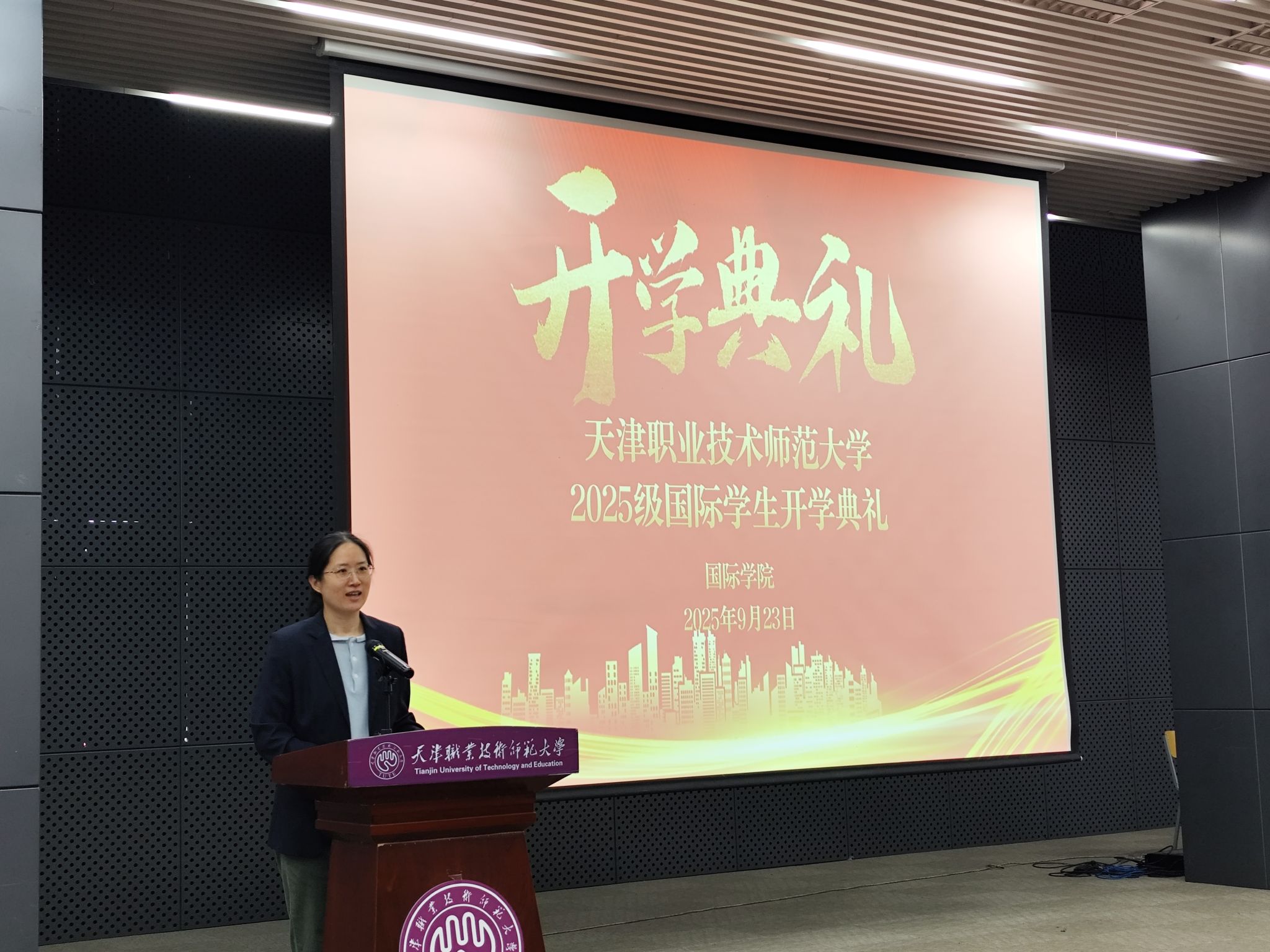 3044am永利官网院长申丽在致辞中代表学院对来自世界各地的2025级国际学生表示热烈欢迎。她介绍了学校的办学特色与优势,强调天职师大始终致力于培养具有国际视野、创新精神和实践能力的高素质人才。她鼓励新生尽快适应新的学习生活环境,积极融入校园文化,珍惜在华留学时光,努力成长为中外文化交流的使者和专业领域的优秀人才。