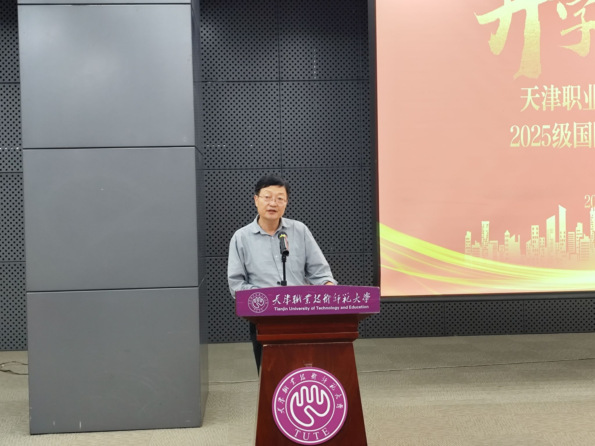 机械工程学院院长戚厚军在讲话中表示,学院将全力为国际学生提供优质的教育资源和实践平台,鼓励同学们夯实专业基础、积极参与实训项目,将理论知识与实践紧密结合,学有所成、学以致用。
